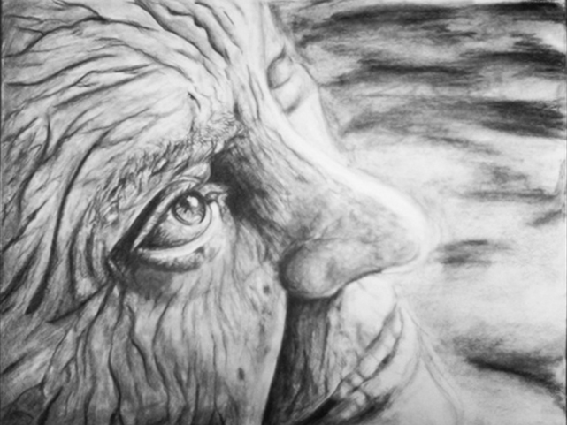 "Alte Frau" 2012. A3. Kohle