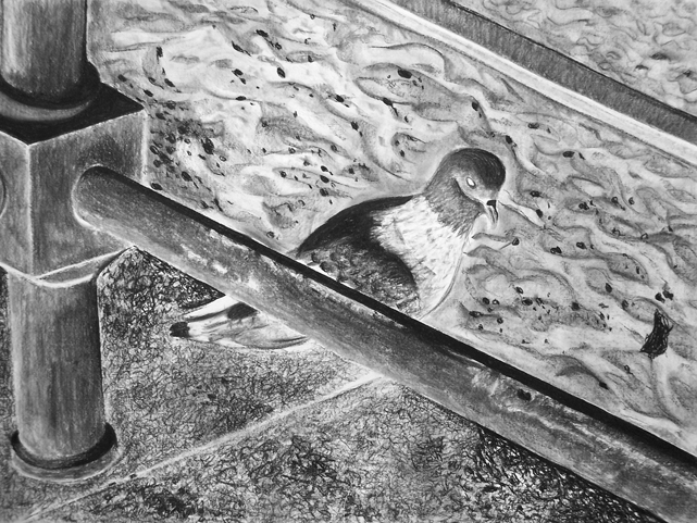 "Urbaner Raum - Großstadttaube" 2011. A2. Kohlezeichnung