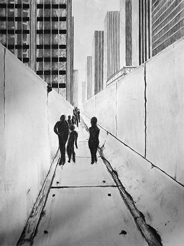 "Urbaner Raum - Bahnhof" 2011. A2. Kohlezeichnung